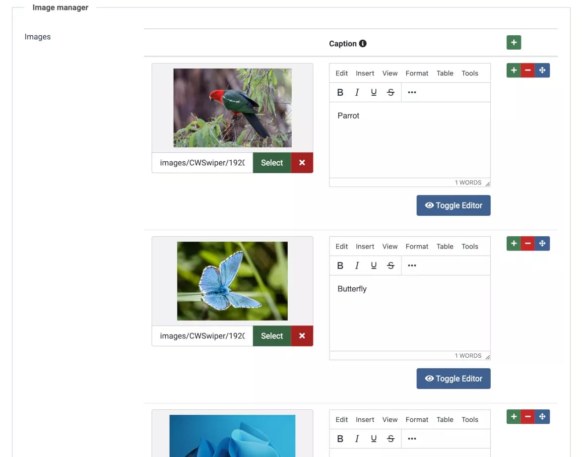 CW-swiper can be used several times within the same page without any conflicts and it is also suitable to be used within one of the many page-builders that are available for Joomla!